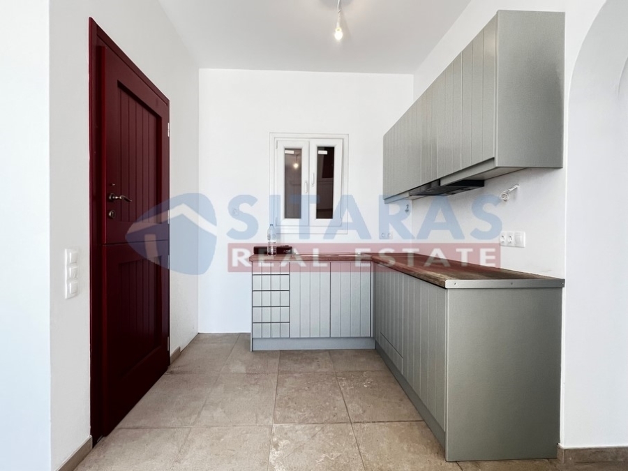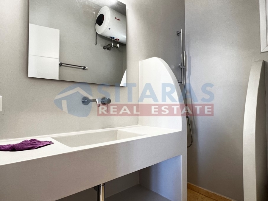 Τήνος, στον υπέροχο Όρμο Υστερνιων (22χλμ.), μια αξιόλογη, νεόδμητη κατοικία -διαμέρισμα, πενήντα πέντε τετραγωνικών μέτρων. Πρόκειται για υποδειγματική κατασκευή, με ποιοτικά χαρακτηριστικά, παραδοσιακή αισθητική και λιτό γούστο. Αποτελείται από έναν ενιαίο χώρο, καθιστικού με κουζίνα, μπάνιο και δυο υπνοδωμάτια. Διαθέτει πρόσβαση αυτοκινήτου, ενεργειακά κουφώματα, μαρμαρόπλακες στο δάπεδο, υπέρθυρα, υποδομή εγκατάστασης κλιματιστικών και μια βεράντα με μοναδική θέα. Η απόλαυση της θάλασσας με όλες τις αισθήσεις . Τα αρώματα της θάλασσας, η αύρα των κυμάτων, η δυνατότητα της θέασης ακόμη και του βυθού, αποτελούν χαρακτηριστικά που σπάνια συναντώνται, δίνοντας την αίσθηση της αποκλειστικής σχέσης με το υδάτινο στοιχείο. Απολαμβάνει τα πλεονεκτήματα μιας εκλεκτής θέσης, πάνω από το νερό, αγναντεύοντας το χωριό, το λιμανάκι, την αμμώδη ακτή, το γειτονικό νησί της Σύρου, όλα τα διερχόμενα πλοία και το απέραντο γαλάζιο, της θάλασσας των Κυκλάδων. Ένα σπάνιο ακίνητο, με όλες τις σύγχρονες ανέσεις, λίγα μέτρα από την ακτή.Για περισσότερες πληροφορίες ή για τον καθορισμό συνάντησης με συνεργάτη του γραφείου, μπορείτε να μας καλέσετε στο 2283025668. Οι υποδείξεις ακινήτων πραγματοποιούνται όλες τις μέρες της εβδομάδας, εκτός Κυριακής, και κατόπιν επικοινωνίας.Για την υπόδειξη του ακινήτου, είναι απαραίτητη η προσκόμιση της ταυτότητας και του ΑΦΜ του ενδιαφερομένου αγοραστή/ενοικιαστή, βάσει του Νόμου 4072/11.4.2012.