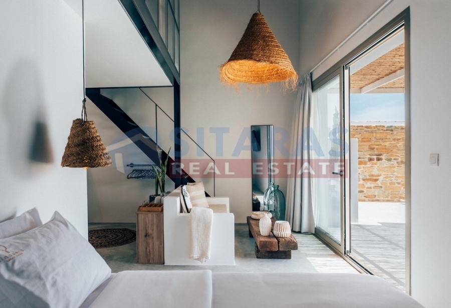 Τήνος, μόλις τρεισήμισι χιλιόμετρα από το λιμάνι και δυο από τις θαυμάσιες, αμμώδεις, ΝΑ παραλίες, ένα ξεχωριστό συγκρότημα, συνολικά 580 τ.μ. , σε οικόπεδο 1.000 τ.μ. Αποτελείται από δέκα αυτόνομες κατοικίες, σαράντα και εξήντα τμ., από τις οποίες οι οκτώ διαθέτουν πισίνα αποκλειστικής χρήσης. Πρόκειται για μια πλήρως λειτουργική, επιπλωμένη και εξοπλισμένη τουριστική μονάδα. Κατασκευάστηκε και εξοπλίστηκε με άριστη ποιότητα και αισθητική, σύμφωνα με την κυκλαδική αρχιτεκτονική. Στο συγκρότημα φιλοξενούνται συνολικά, σαράντα άτομα. Διαθέτει ψύξη/θέρμανση με σύγχρονες κλιματιστικές μονάδες, ένα υπόγειο πενήντα τμ. για βοηθητικές χρήσεις (πλυντήριο -στεγνωτήριο, αποθήκευση τροφίμων-εξοπλισμού), γεννήτρια, δυο δεξαμενές νερού, δεξαμενές λυμάτων, ηλιακούς θερμοσίφωνες και σχολαστική μόνωση. Ένα αξιόλογο, νεόδμητο, επενδυτικό ακίνητο, μια πρότυπη ξενοδοχειακή επιχείρηση, σε κομβικό σημείο, που συνδυάζει τη θέα, την εγγύτητα στη Χώρα, τη θάλασσα και προφέρει άμεσα, υπολογίσιμο εισόδημα. Για περισσότερες πληροφορίες ή για τον καθορισμό συνάντησης με συνεργάτη του γραφείου, μπορείτε να μας καλέσετε στο 2283025668. Οι υποδείξεις ακινήτων πραγματοποιούνται όλες τις μέρες της εβδομάδας, εκτός Κυριακής, και κατόπιν επικοινωνίας.Για την υπόδειξη του ακινήτου, είναι απαραίτητη η προσκόμιση της ταυτότητας και του ΑΦΜ του ενδιαφερομένου αγοραστή/ενοικιαστή, βάσει του Νόμου 4072/11.4.2012.