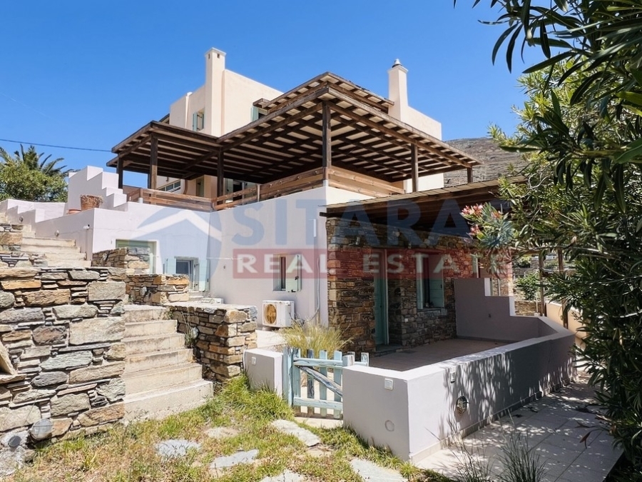 Τήνος, σε απόσταση επτά χιλιομέτρων από το λιμάνι, στο νοτιοανατολικό, παραλιακό μέτωπο του νησιού, μια μονοκατοικία (άδεια 1989 και ολοκλήρωση 2006),κάθετη ιδιοκτησία, συνολικά 245τμ. Οικοδομήθηκε σε οικόπεδο- κήπο, 3.754τμ., σύμφωνα με τους τοπικούς πολεοδομικούς κανόνες και την κυκλαδίτικη αρχιτεκτονική, σε συνδυασμό με τις σύγχρονες ανέσεις . Αποτελείται από ενιαίο χώρο καθιστικού με τζάκι, τραπεζαρία και κουζίνα ,στο ισόγειο. Ο όροφος, χωρίζεται σε τρία υπνοδωμάτια με δύο μπάνια. Λόγω του επικλινούς εδάφους, έχουν επίσης κατασκευαστεί, δύο πλήρως ανεξάρτητοι και λειτουργικοί, ισόγειοι ξενώνες, 47 και 78 τμ. Κατασκευάστηκε για ιδιόχρηση, με μέριμνα στην ποιότητα και την αισθητική. Διαθέτει μαρμάρινες λεπτομέρειες, ενεργειακά κουφώματα, ξύλινη επένδυση στην οροφή, κεντρική θέρμανση, έξη κλιματιστικές μονάδες, ξύλινα ντουλάπια κουζίνας -υπνοδωματίων, γκαράζ – αποθήκη, δεξαμενή νερού και ηλιακό θερμοσίφωνα. Οι μεγάλες, στεγασμένες όσο και προστατευμένες βεράντες, σε κάθε επίπεδο, προσφέρουν μια απολαυστική θέα προς το πέλαγος και τα γειτονικά νησιά. Επίσης, η μικρή απόσταση του ενός χιλιομέτρου από τις θαυμάσιες αμμώδεις παραλίες της περιοχής, επιτρέπει την εύκολη πρόσβαση, χωρίς την ανάλογη όχληση. Ένα σπάνιο ακίνητο, με διαμορφωμένο κήπο, με αρκετά δέντρα, κοντά στο λιμάνι και τη θάλασσα, κατάλληλο για ιδιόχρηση αλλά και τουριστική αξιοποίηση. Για περισσότερες πληροφορίες ή για τον καθορισμό συνάντησης με συνεργάτη του γραφείου, μπορείτε να μας καλέσετε στο 2283025668. Οι υποδείξεις ακινήτων πραγματοποιούνται όλες τις μέρες της εβδομάδας, εκτός Κυριακής, και κατόπιν επικοινωνίας.Για την υπόδειξη του ακινήτου, είναι απαραίτητη η προσκόμιση της ταυτότητας και του ΑΦΜ του ενδιαφερομένου αγοραστή/ενοικιαστή, βάσει του Νόμου 4072/11.4.2012.
