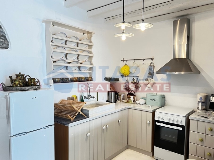 Τήνος, στον ‘’ζωντανό’’ ορεινό οικισμό της Στενής, 17 χιλιόμετρα από το λιμάνι, μια ισόγεια κατοικία εβδομήντα τεσσάρων τετραγωνικών μέτρων. Πρόκειται για ένα παλιό κατώι, υποδειγματικά αναστηλωμένο και διακοσμημένο, με σεβασμό στην τοπική αρχιτεκτονική, παράλληλα με τις σύγχρονες ανέσεις .Αποτελεί τμήμα διώροφης, λιθόκτιστης κατοικίας, αρκετά κοντά σε αμαξιτή οδό, αλλά εντός του παραδοσιακού ιστού του χωριού. Διαθέτει έναν άνετο, ενιαίο χώρο, κουζίνας -τραπεζαρίας -καθιστικού, ένα υπνοδωμάτιο και το μπάνιο. Στην είσοδο, υπάρχει μια μικρή αυλή και στο βάθος, ένας μεγάλος, διαμορφωμένος, εξωτερικός καθιστικός χώρος. Είναι πλήρως επιπλωμένο και εξοπλισμένο, με ηλεκτρικά σώματα (θερμοπομπούς ) για να φιλοξενήσει, ένα ή δυο άτομα. Ένα θαυμάσιο ακίνητο, ξεχωριστής αισθητικής ,σ ένα δροσερό οικισμό και σε απόσταση λίγων χιλιομέτρων ,από τις ιδιαίτερες παραλίες, της βορειοανατολικής Τήνου.