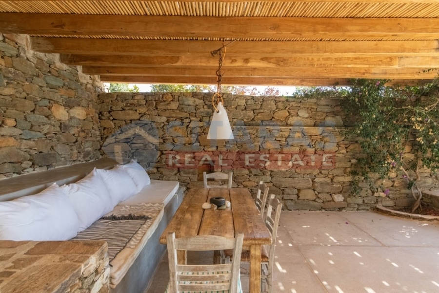 Τήνος, μόλις τρία χιλιόμετρα από το λιμάνι, μια μοναδική, λιθόκτιστη μονοκατοικία (κάθετη ιδιοκτησία) 195 τμ σε οικόπεδο 2.000 τμ, διαμορφωμένο σε καταπράσινο κήπο. Βρίσκεται σε εκλεκτή θέση, είναι κυριολεκτικά λαξευμένη στο χώρο, σύμφωνα με την παράδοση των Τηνιακών κατοικιών, με υψηλή αισθητική και σεβασμό στο ιδιαίτερο κυκλαδίτικο περιβάλλον του νησιού. Η αρχιτεκτονική της προσαρμόστηκε, ώστε να συνδυάσει σύγχρονα με παραδοσιακά στοιχεία, προσφέροντας ανέσεις και διατηρώντας παράλληλα, τη γνήσια ατμόσφαιρα των παραδοσιακών κτισμάτων. Στο εξωτερικό της κυριαρχεί η ξερολιθιά με γήινους τόνους και ο διαμορφωμένος κήπος με δυο στεγασμένες αυλές, ένα διακριτικό υδάτινο στοιχείο και βεράντες με αρκετούς καθιστικούς χώρους, για καθημερινή απόλαυση. Το εσωτερικό προσδιορίζεται κυρίως από πέτρα και ανθεκτικά, απολύτως φυσικά κονιάματα, σε χρώματα γεώδη, δημιουργώντας ένα φιλόξενο, ελκυστικό και οικείο περιβάλλον. Διαθέτει στο ανώγειο ένα υπνοδωμάτιο με μπάνιο, ένα μεγάλο καθιστικό με τραπεζαρία, μια ανεξάρτητη κουζίνα και αποθήκη. Στο ισόγειο, διαμορφώθηκαν τρείς χώροι ύπνου, δυο μπάνια και μια μεγάλη αποθήκη. Διαθέτει ξύλινα, ενεργειακά κουφώματα, γερμανικού τύπου, σύστημα κεντρικής θέρμανσης με αντλία θερμότητας, μεγάλο μπόιλερ, σύστημα αφαλάτωσης κεντρικού δικτύου, εξομοιωτή τάσης με αντικεραυνική ασφάλεια, γεννήτρια, γερμανικούς διακόπτες βακελίτη, πλήρες σύστημα αυτόματου ποτίσματος, επιτοίχια φωτιστικά, λευκά είδη Smeg. Από την κατοικία και τον άνετο κήπο, απολαμβάνεται ένα μαγευτικό ηλιοβασίλεμα στο γαλήνιο τοπίο και η ευρύτατη θέα της θάλασσας με τουλάχιστον δέκα Κυκλαδονήσια. Ένα αξέχαστο, «εθιστικό» ακίνητο, έργο τέχνης, για τους θαυμαστές της «ψυχής», της αληθινής Τήνου. Θα διατηρήσει αναλλοίωτη την αξία του στο χρόνο, συνδυάζοντας τον περιβάλλοντα χώρο, τη θέα, την εγγύτητα στην πόλη και τις μοναδικές αμμώδεις παραλίες.Για περισσότερες πληροφορίες ή για τον καθορισμό συνάντησης με συνεργάτη του γραφείου, μπορείτε να μας καλέσετε στο 2283025668. Οι υποδείξεις ακινήτων πραγματοποιούνται όλες τις μέρες της εβδομάδας, εκτός Κυριακής, και κατόπιν επικοινωνίας.Για την υπόδειξη του ακινήτου, είναι απαραίτητη η προσκόμιση της ταυτότητας και του ΑΦΜ του ενδιαφερομένου αγοραστή/ενοικιαστή, βάσει του Νόμου 4072/11.4.2012.