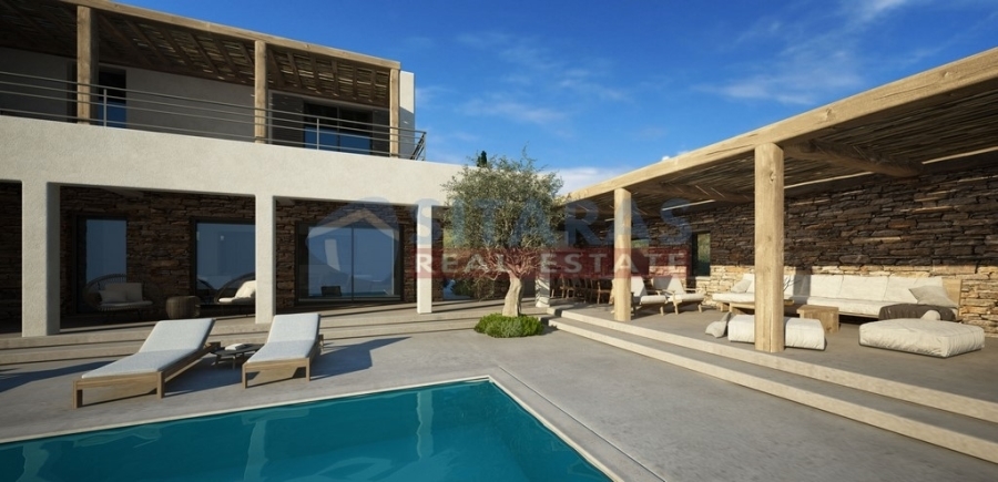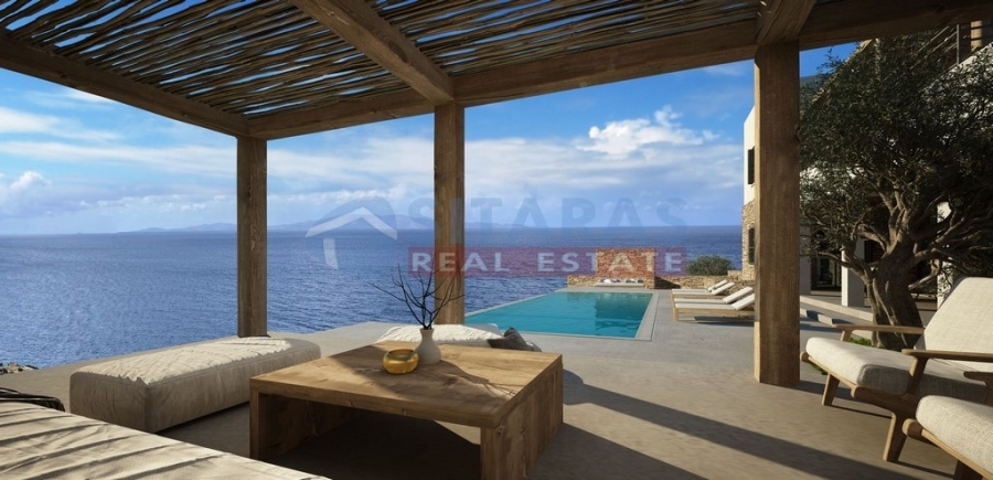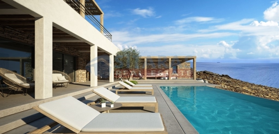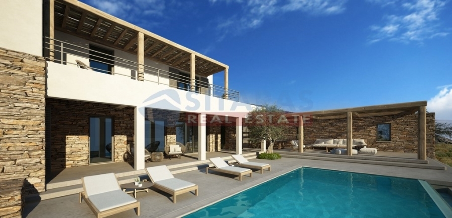 At Tinos, it is difficult to capture the uniqueness of the location in a text, since the residence’s distance of fifty meters from the sea is not possible during the last twenty years.The use of the old permit, seen with a modern eye and elements from the local architecture, offers a wonderful result. The combination of the new architectural perspective, without unnecessary design exaggerations and with respect to traditional elements, the use of local materials and the construction by experienced craftsmen is impressive.On a coastal plot of 4,500 square meters, 380 square meters were built, with 480 square meters covering the outdoor spaces and 45 square meters the swimming pool.There are four main and two auxiliary sleeping spaces in total, with bathroom and dressing room, five of which have a view to the sea. After the main entrance, you can find a comfortable living room, with a separate kitchen, having the first of the many outdoor spaces and the swimming pool as its natural continuation. On its eastern side, protected by stone walls, a leeward, roofed living-dining room with BBQ has been built. To the west, an open area for enjoyable sunbathing. At the same time, three parking spots, an underground water tank, the boiler room and storerooms have been provided for.The sounds and scent of the sea breeze, as well as the view to the sea with ships sailing, offer a rare charm and create a great perspective. The proximity to the town, the excellent design and quality implementation, the large indoor and outdoor spaces complete an investment property, rarely available in the Cyclades.For more information or to schedule an appointment with an office associate, you can call us at (+30)2283025668. Property suggestions are made every day of the week, except Sunday, and upon contact.For the suggestion of a property, it is necessary to present the identity and TIN of the interested buyer/tenant, pursuant to Law 4072/11.4.2012.