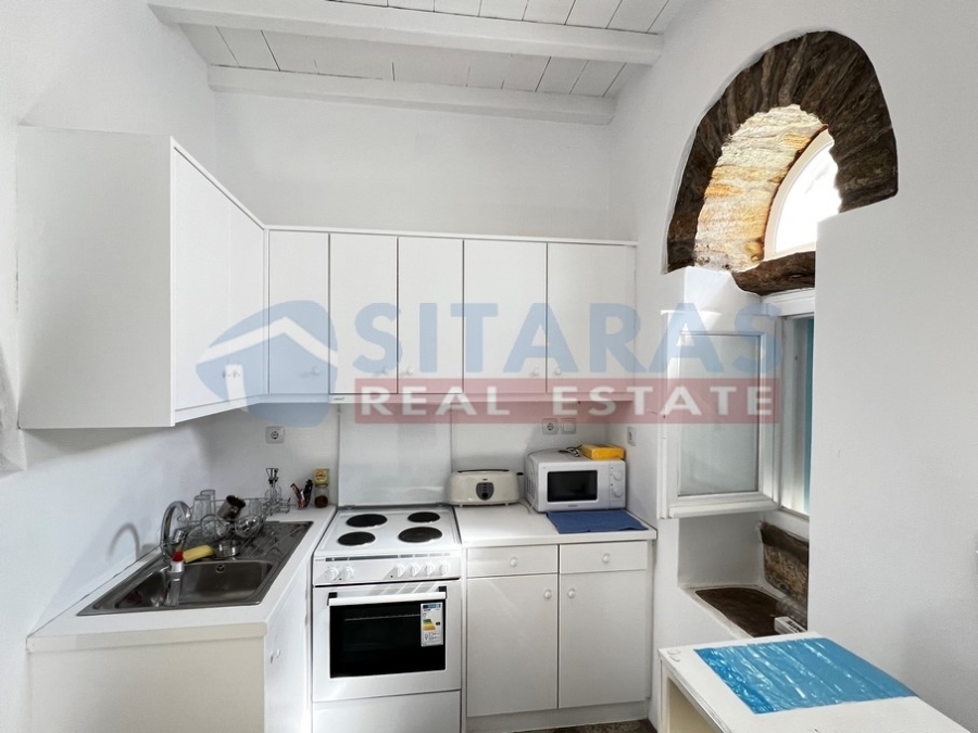 Tinos, in the historic and popular traditional village of Pyrgos (20 km from the port), an exemplary restored, stone-built residence of one hundred and sixty square meters.It was restored with absolute respect for the local architecture, preserving the Cycladic austerity and the medieval atmosphere of the centuries-old houses.It is located in the marble-paved cobblestones of a village with a widespread artistic tradition, home of the famous marble school and birthplace of many artists.It consists on the first floor of a single space for living room with a kitchen, a bathroom and a bedroom with a fireplace. The lower floor is fully arranged as a second apartment, with a kitchen, bathroom, a large single space and a room with a fireplace at the entrance. It is promptly habitable and is already used as a summer accommodation. Outside, it has a nice private terrace overlooking the unique village and the neighboring slopes. The flat roof can also be accessed and offers a wider view to the village. The short distance from the picturesque port of Panormos and the beautiful sandy shores offers easy access to the sea. An interesting property, in excellent condition with the possibility of immediate exploitation.For more information or to schedule an appointment with an office associate, you can call us at (+30)2283025668. Property suggestions are made every day of the week, except Sunday, and upon contact.For the suggestion of a property, it is necessary to present the identity and TIN of the interested buyer/tenant, pursuant to Law 4072/11.4.2012.