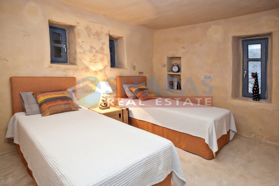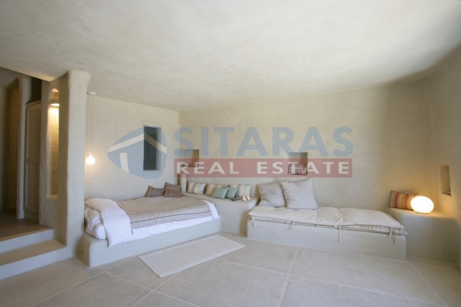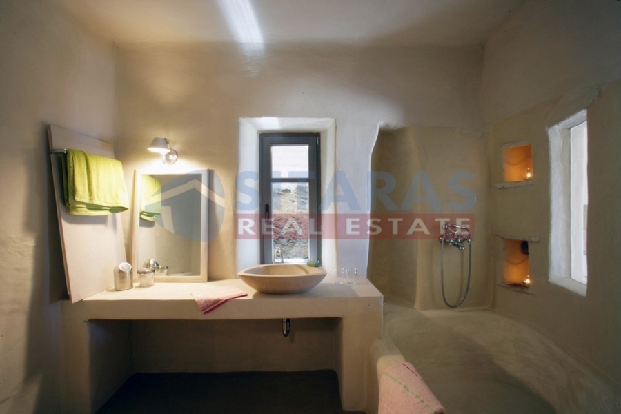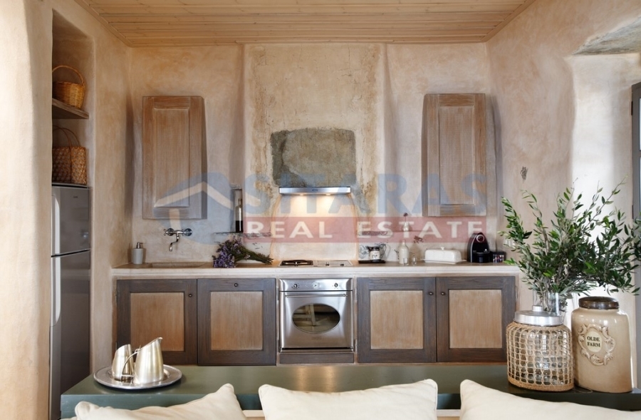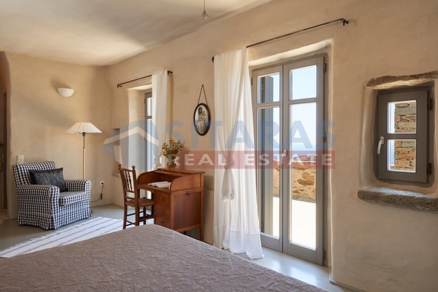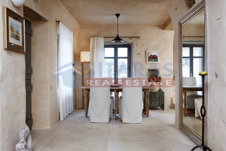 Tinos, just three kilometers from the port, a unique, under construction, stone-built detached residence (property in co-ownership) of two hundred and twenty five square meters. It is found at a prime location, carved in the area, according to the tradition of Tinian houses, with high aesthetics and respect for the special Cycladic environment of the island. Its architecture was adapted to combine modern with traditional elements, offering comforts while preserving the original atmosphere of traditional buildings. The exterior is dominated by dry stone with earthy tones and the landscaped garden with the roofed courtyard, terraces and several sitting areas for daily enjoyment. The interior is mainly characterized by stone, Tinian marble and durable, completely natural mortars, in earthy colors, creating a welcoming, attractive and intimate environment. It has a guesthouse on the first floor, consisting of a bedroom with a fireplace, a bathroom and a roofed terrace with a delightful view. On the ground floor there is a comfortable living room, as well as a spacious kitchen with a bathroom. On the ground floor-downstairs there are two bedrooms, with the possibility of a third, an office, a living room and two bathrooms. From the residence and the comfortable garden of one thousand one hundred square meters you can enjoy a magnificent sunset in the peaceful landscape, a wide view to the sea and at least ten islands of the Cyclades. An unforgettable, `addictive` property, a piece of art, for those who admire the `soul` of real Tinos. It will retain its value over time, combining the comfortable garden, the view, the proximity to the town and the unique sandy beaches. Internal photos, of other completed properties, of the same builder are listed.For more information or to schedule an appointment with an office associate, you can call us at (+30)2283025668. Property suggestions are made every day of the week, except Sunday, and upon contact.For the suggestion of a property, it is necessary to present the identity and TIN of the interested buyer/tenant, pursuant to Law 4072/11.4.2012.