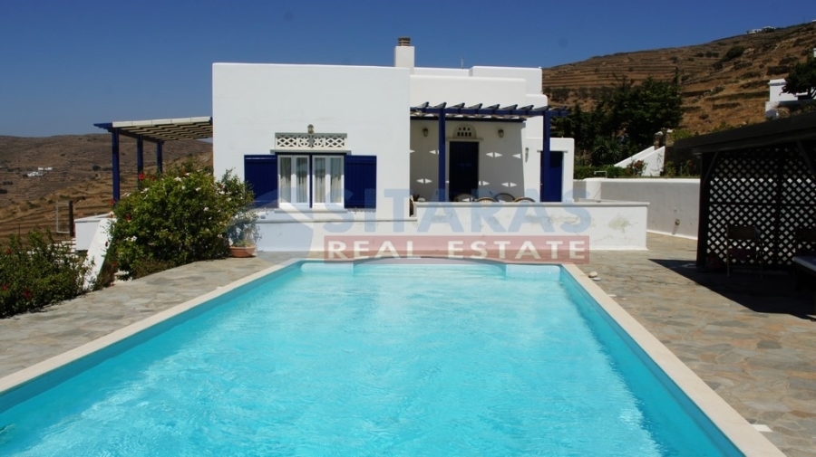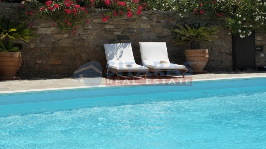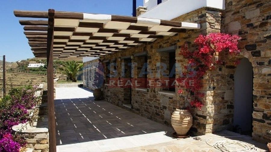 Α modern property of high aesthetics and with respect to the local architecture, is situated on a plot of land of 2.129,45 m², 3 km east of the harbor and 3km of the wonderful beaches of Tinos island. It consists of a large dining-living room with a separate kitchen, entrance hall, wc, two bathrooms and three spacious bedrooms. It has wooden floors, double glazed windows, excellent Italian kitchen fittings and fixtures, swimming pool, large verandas covered with marble slabs, pergola and οffers a spectacular view to the Aegean Sea and at least four islands.