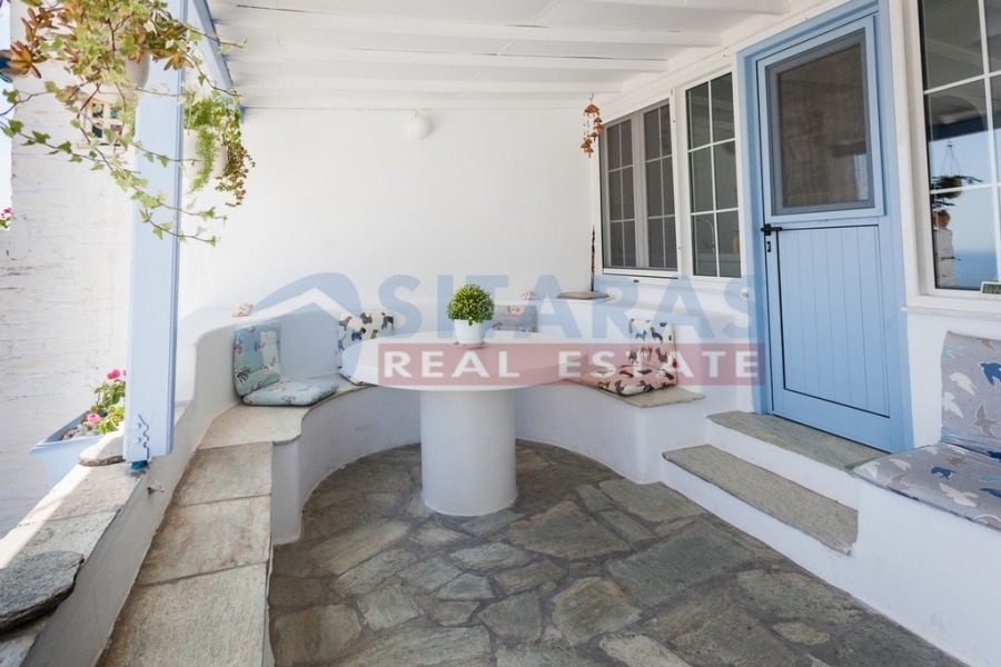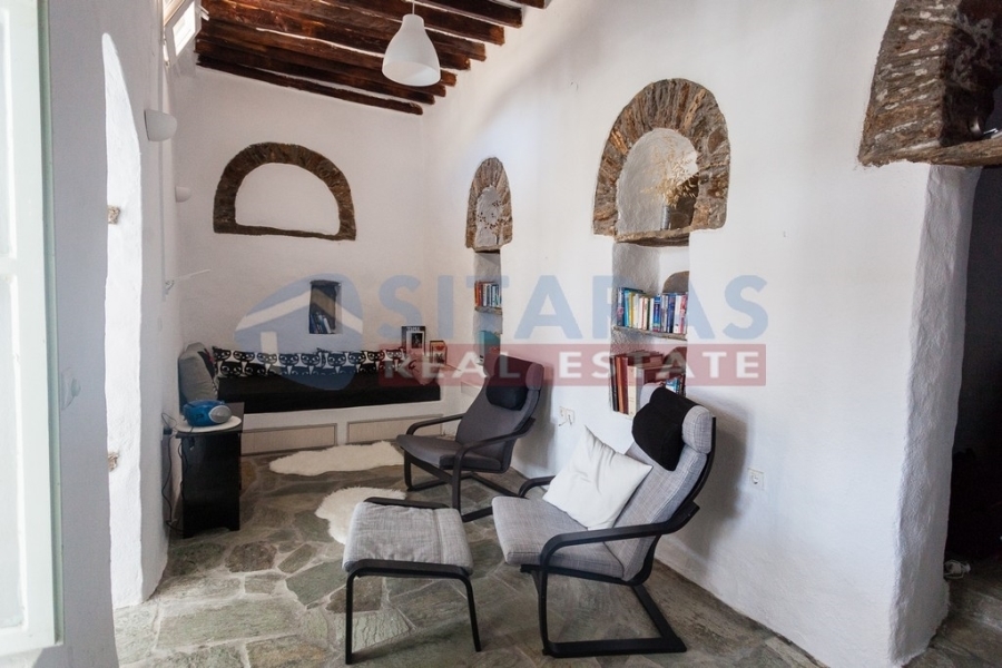 Tinos. At the beautiful and popular Triantaros, a recently renovated, stone house of 88.53 sq. m. of Cycladic architecture.It extends to two separate levels, with quite easy access, since it is only 20 meters from the public road, on the paved stairs of the village. Apart from its excellent condition, it is furnished and equipped for immediate habitation. Upstairs there is an open kitchen and the dining room near the entrance, then the living room with the fireplace and one bedroom. Downstairs there is an autonomous guest house, with its own bathroom.Its large outdoor areas are a rare advantage. In addition to the terrace of the upper floor, there is a big paved yard - garden, with two trees and a small warehouse. The view of the terrace and part of the yard to the sea completes this autonomous residence, which is also ideal for tourist exploitation.For more information or to schedule an appointment with an office associate, you can call us at (+30)2283025668. Property suggestions are made every day of the week, except Sunday, and upon contact.For the property visit, it is necessary to present the identity and TIN of the interested buyer/tenant, pursuant to Law 4072/11.4.2012.
