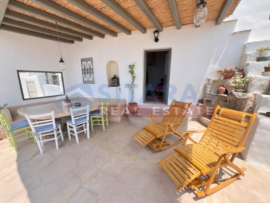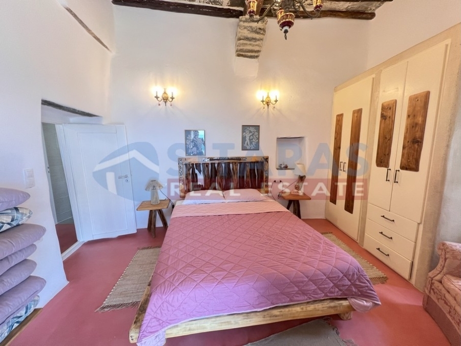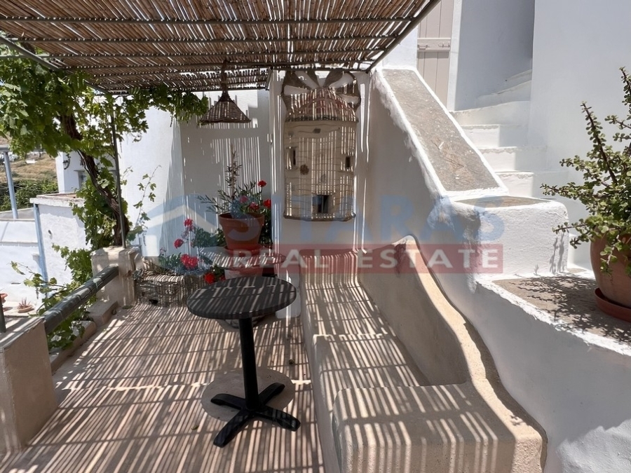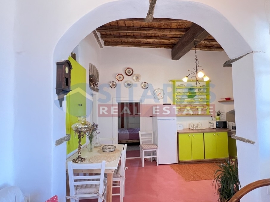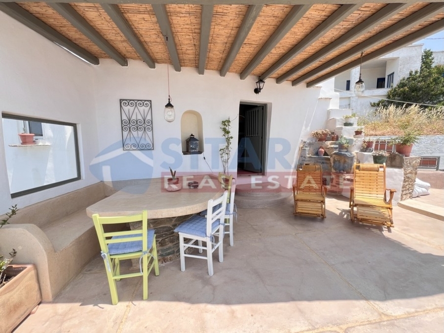 Tinos, dans l`un des villages de montagne les plus beaux et les mieux préservés, se trouve une résidence en pierre restaurée de 97 mètres carrés, avec deux terrains constructibles. Située à quelques mètres de la voie publique, elle est facile d`accès tout en préservant tranquillité et intimité. Récemment rénovée (2024), elle a été réalisée avec le plus grand soin et le plus grand goût des propriétaires. L`accent a été mis sur la qualité de la construction, dans le respect de l`esthétique cycladique et du style ancien de la maison. Des couleurs vives ont été choisies, comme par le passé, et la plasticité de la maçonnerie, le revêtement en bois du plafond et une multitude de détails ont été préservés, en accord avec le caractère du bâtiment. Sous les arcades pavées de l`ancien rez-de-chaussée-étage inférieur, un magnifique studio-maison d`hôtes indépendant a été créé. Il comprend une chambre simple avec cuisine, salle de bains et vue sur la mer depuis la porte et la fenêtre. À l`étage supérieur se trouvent le salon, suivi de la cuisine principale, de deux chambres et d`une salle de bains. Ils mènent à trois espaces extérieurs couverts et confortables avec barbecue et vue imprenable. Le rez-de-chaussée comprend également deux débarras et, dans le prolongement de la plus grande terrasse, un bâtiment semi-en ruine avec possibilité d`agrandissement de 144 mètres carrés. Outre ces bâtiments, deux terrains constructibles sont disponibles, de 108 et 126 mètres carrés respectivement. Le premier, situé à l`avant, offre également une vue magnifique et couvre 126 mètres carrés, tandis que le second, situé à l`arrière de la résidence, offre une capacité de construction de 108 mètres carrés. La vue panoramique impressionnante embrasse les villages voisins, les pentes en pierre et leurs anciennes terrasses, au moins trois îles, la ville et son port, ainsi que tous les navires naviguant sur le bleu profond de la mer Égée. Un ensemble immobilier rare, au sein du village, avec un fort potentiel de développement. Pour plus d'informations ou pour prendre rendez-vous avec un collaborateur, vous pouvez nous appeler au (+30)2283025668. Les propositions de biens immobiliers sont faites tous les jours de la semaine, sauf le dimanche, et sur demande.Pour toute proposition d’un bien immobilier, il est nécessaire de présenter l'identité et le NIF de l'acheteur/locataire intéressé, conformément à la loi n° 4072/11.4.2012.
