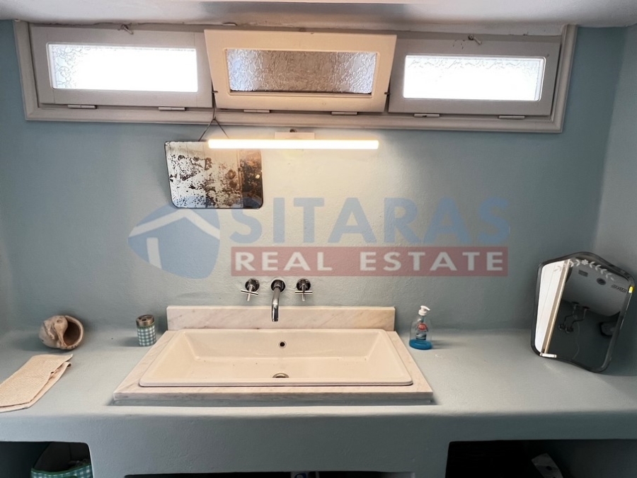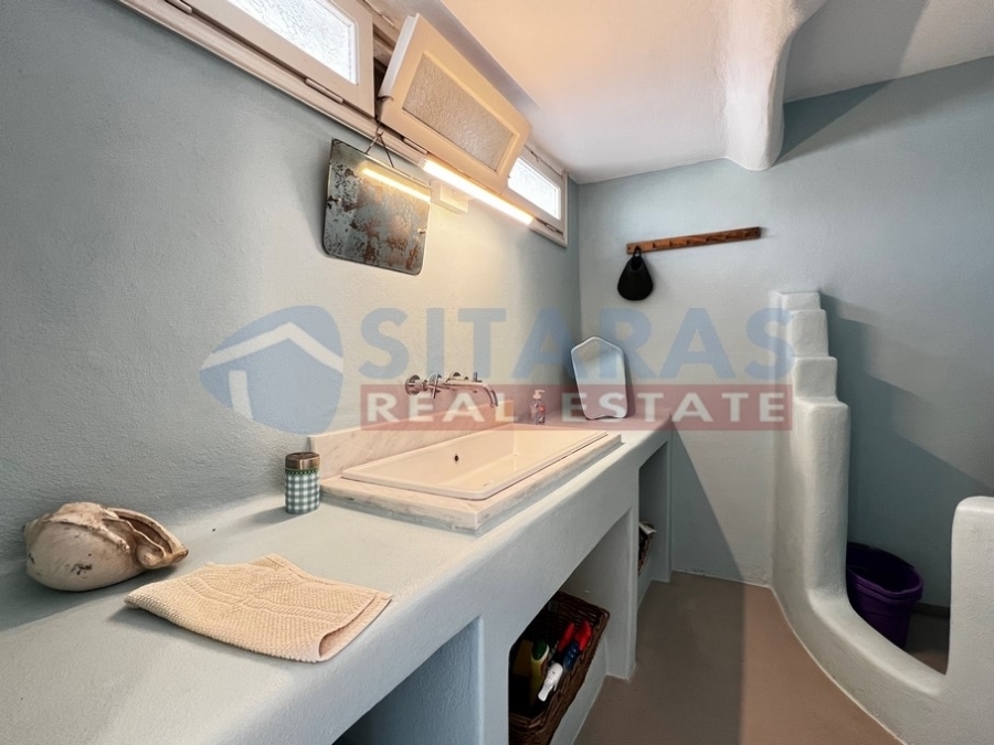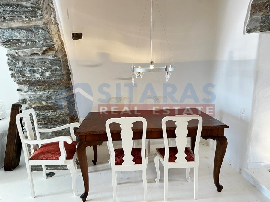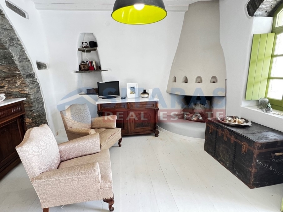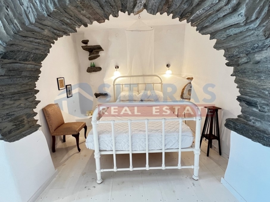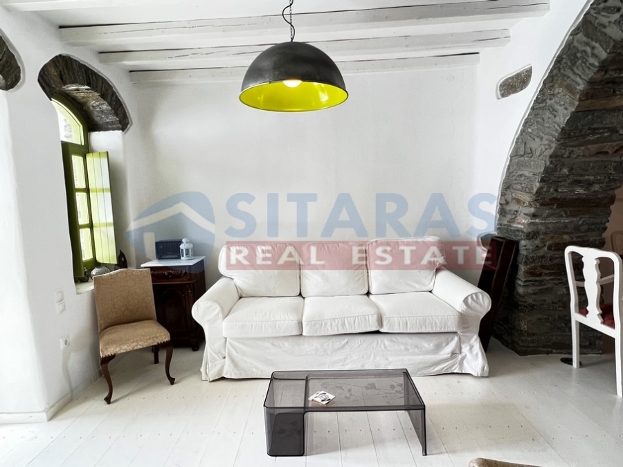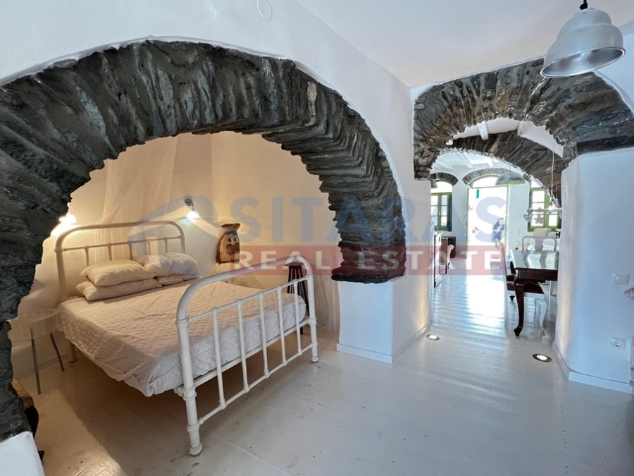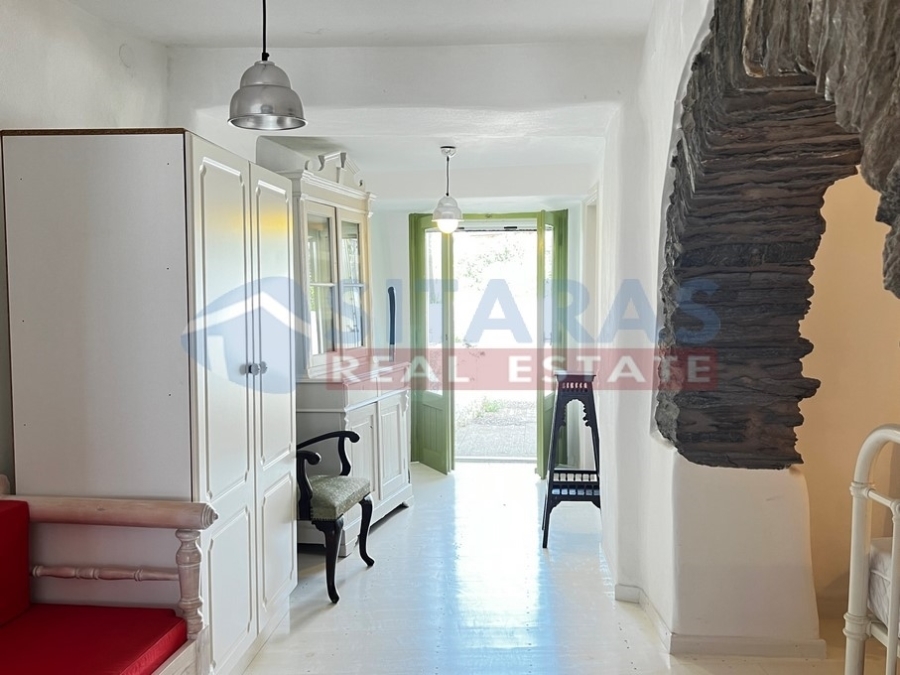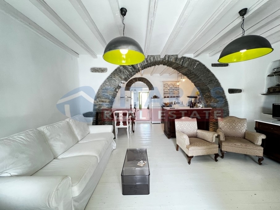 Tinos, dans le village montagneux "vivant" de Steni, à 17 kilomètres du port, une résidence au rez-de-chaussée de soixante-quatorze mètres carrés. Il s'agit d'un ancien étage inférieur, restauré et décoré de manière exemplaire, dans le respect de l'architecture locale, aux côtés du confort moderne.Elle fait partie d'une résidence en pierre de deux étages, assez proche d'une route pavée, mais dans le tissu traditionnel du village. Elle dispose d'un espace unique et confortable pour la cuisine-salle à manger-salon, une chambre et la salle de bains. A l'entrée, il y a une petite cour et au fond, un grand coin salon extérieur paysagé. Elle est entièrement meublée et équipée, avec des appareils électriques (radiateurs) pour accueillir une ou deux personnes. Une magnifique propriété, avec une esthétique unique, dans un village du climat frais et à quelques kilomètres des plages uniques du nord-est de Tinos.